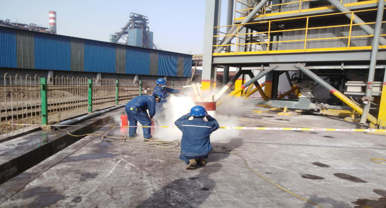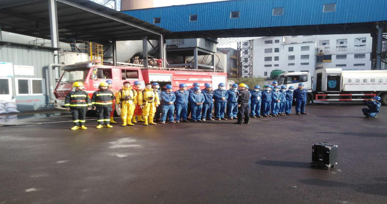 為貫徹執行“安全第一、預防為主、綜合治理”和“預防為主,防消結合”的安全、消防工作方針,規范公司應急管理工作,提高突發(fā)應急救援反應速度和協(xié)調水平,增強綜合處置事故的能力,預防和控制衍生災害的發(fā)生,保障公司崗位員工和公眾的安全,最大限度的減少財產(chǎn)損失、環(huán)境破壞和社會(huì )影響,10月22日,山西藍鼎協(xié)同建龍安全環(huán)保組,環(huán)保處,消防管理處共同開(kāi)展200燒結脫硫脫硝氨水泄露事故消防演練。